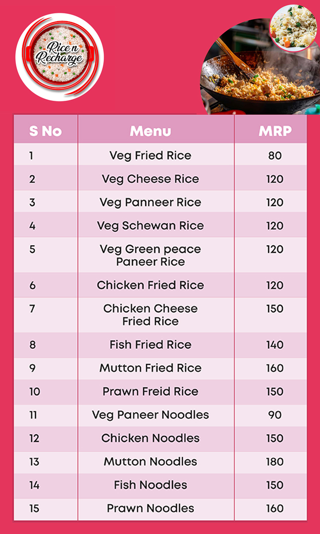 Rice n Recharge will be an QSR structured food counter which can deliver at food at high hygiene standards.